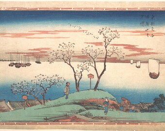 Hiroshige Evening Cherry Blossoms Art Print: Japanese Woodblock Reproduction
